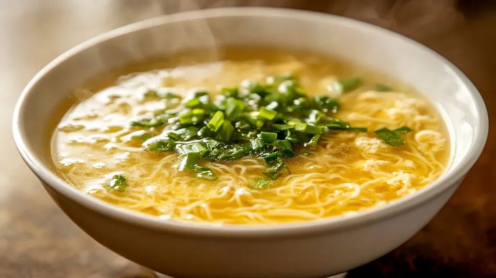 【制作方法】①把鸡蛋搅拌均匀,香菜、葱白、生姜洗净后切碎。②在锅中烧开适量清水,加入少许水淀粉,片刻后将搅拌好的鸡蛋慢慢倒入,使之成片状。③再加入香菜、葱白、姜的碎末及盐、味精,出锅前加入少许香油。